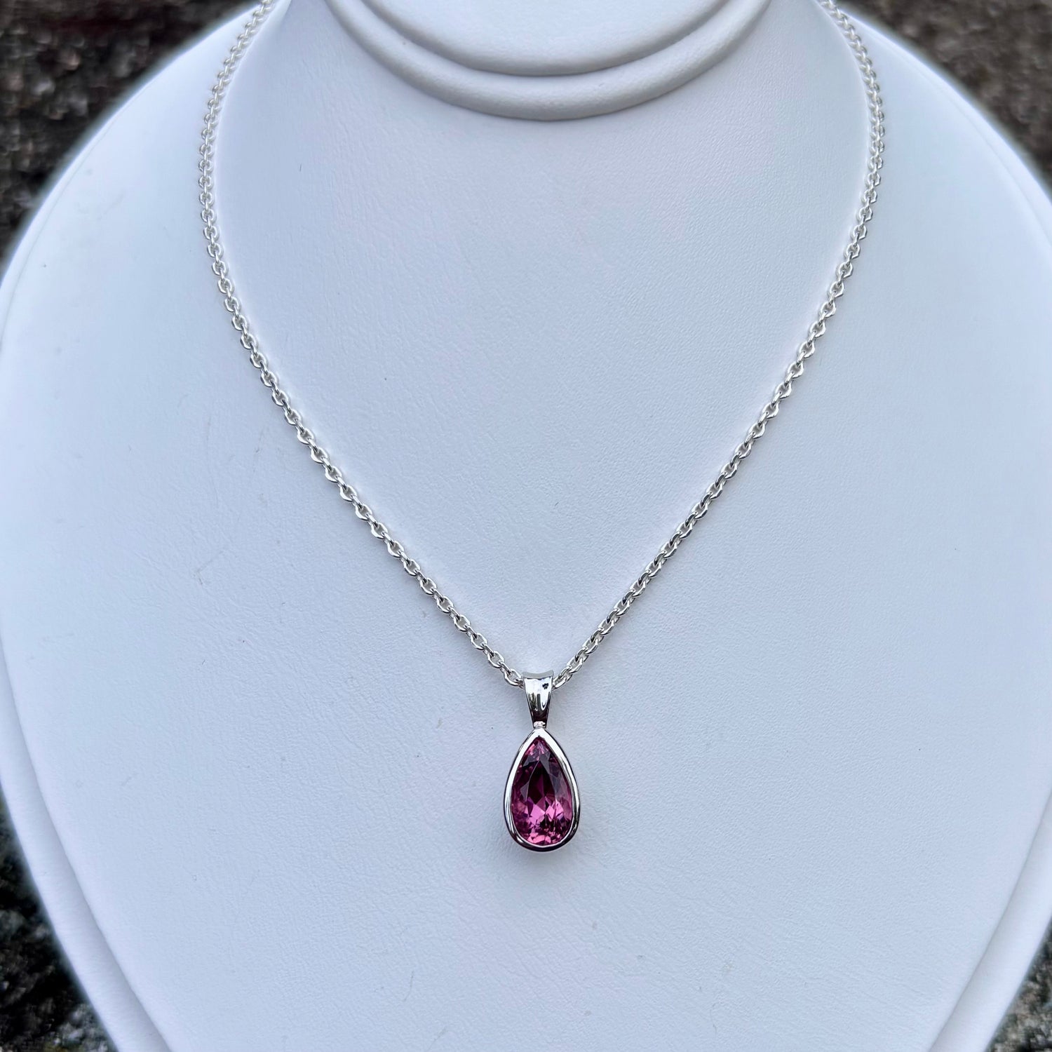 Pink Tourmaline Teardrop Bezel Set Necklace