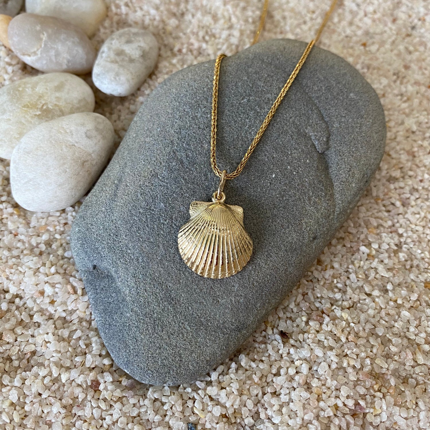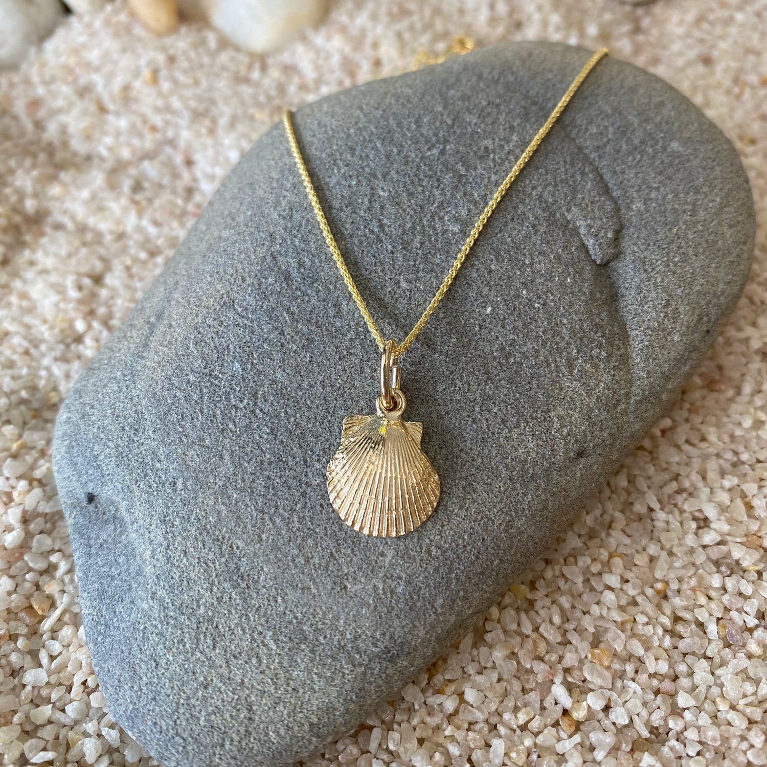 Our scallop pendants are beautifully crafted in 14K gold and can also work beautifully as a charm for a bracelet to complete a sea treasure collection.