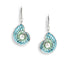 Blue Nautilus Shell Wire Earrings in Sterling Silver with Plique-a-Jour Vitreous Enamel and Freshwater Pearls. Rhodium Plated for easy care.