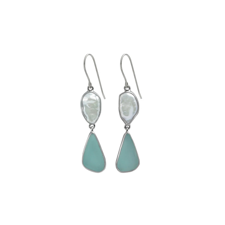 Sea Glass + Biwa Pearl Drop Earrings