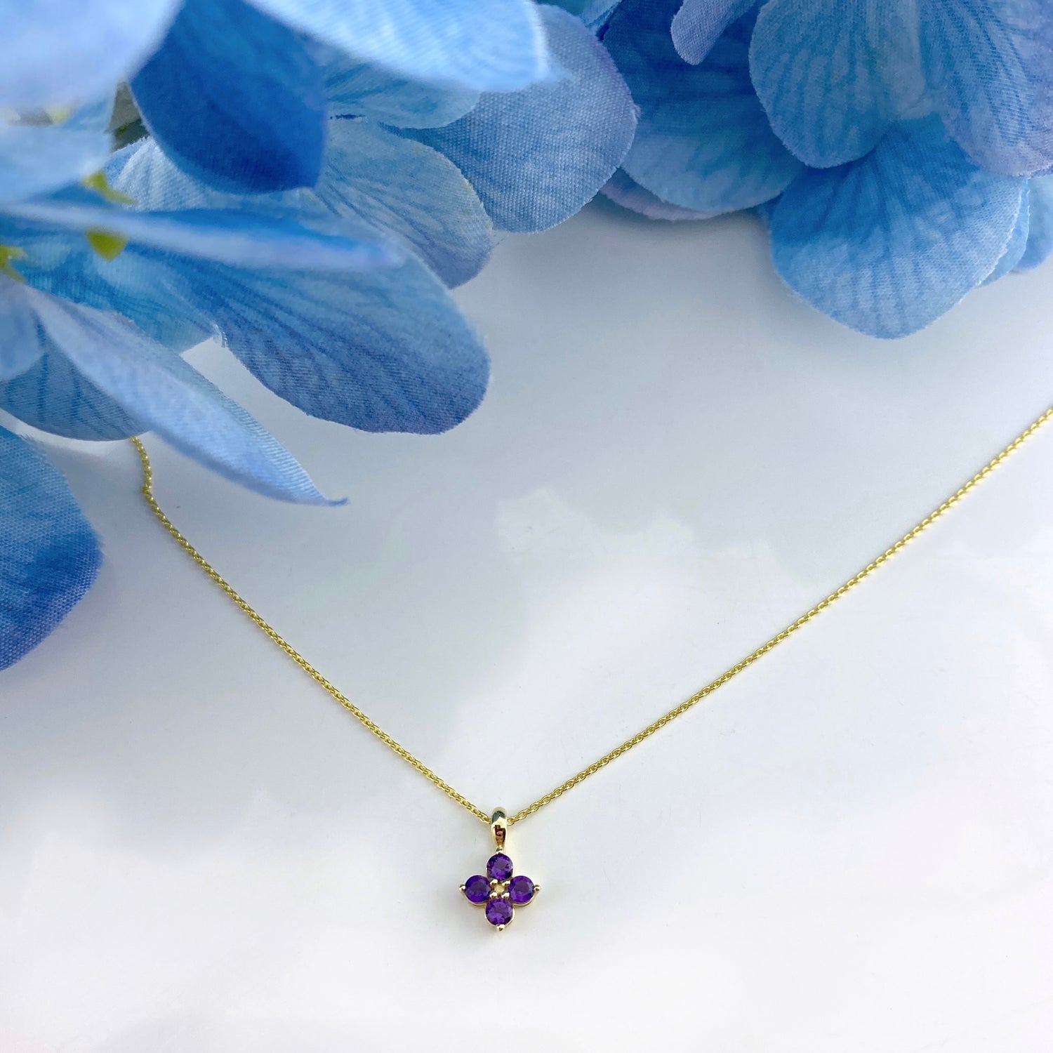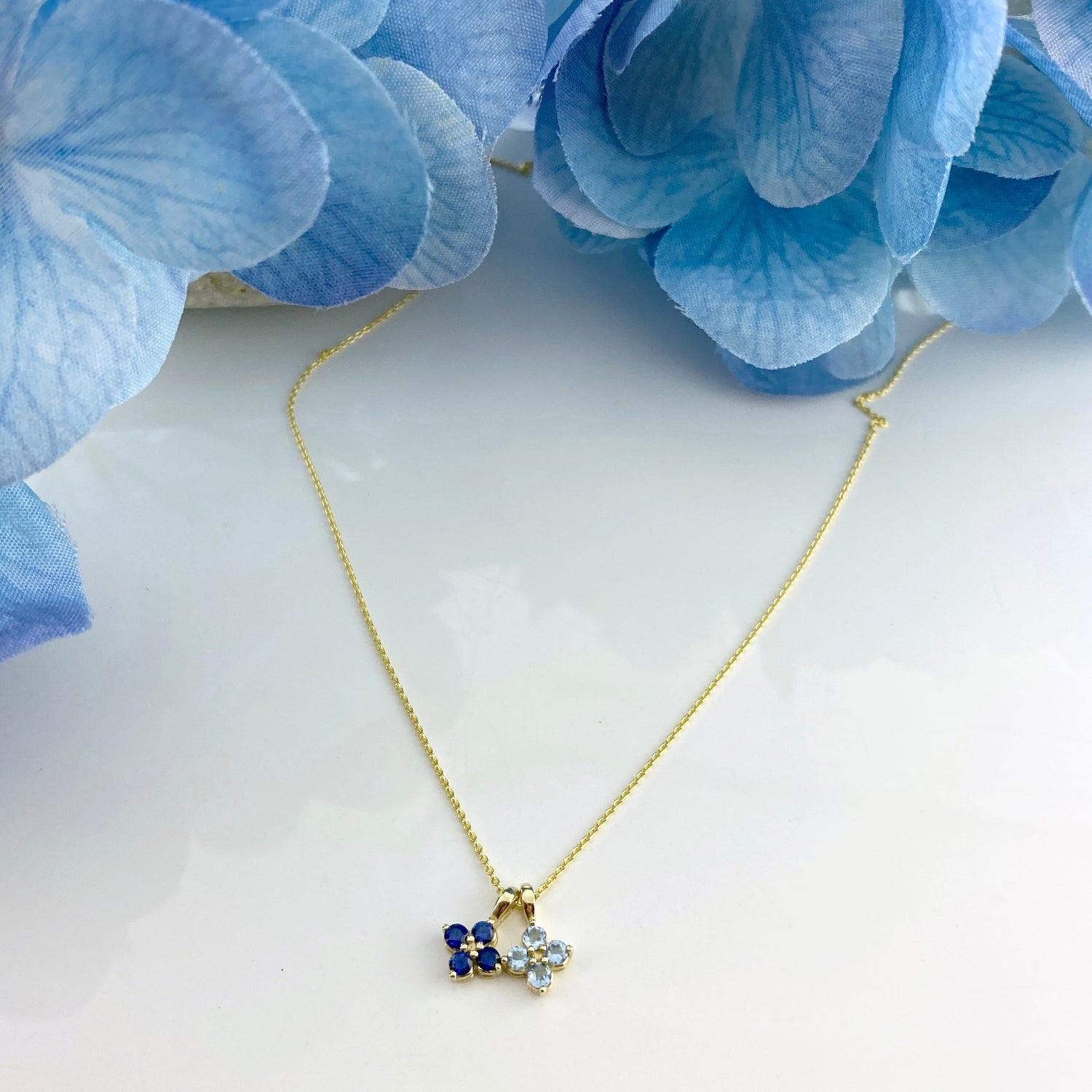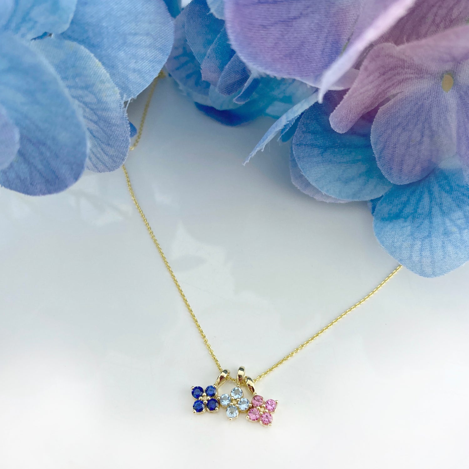 This mini gemstone necklace is inspired by the color variations of Cape Cod's most beautiful summertime flower - Hydrangea! Hydrangea blooms are made up of multiple tiny four-petal flowers and depending on the soil conditions, can be seen in a variety of colors.