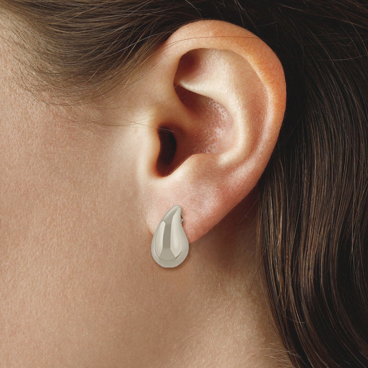 These earrings feature a chunky teardrop design that is easy to wear and go with everything. Earrings are made from Sterling Silver with heavy walled hollow construction and butterfly backs slide onto posts.