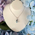 This 14K white gold necklace features two sparkling blue topaz stones in London and Swiss blue. A petite natural diamond accents this beautiful pendant. It is paired with a 14k white gold chain, 18" in length (please email for other lengths).