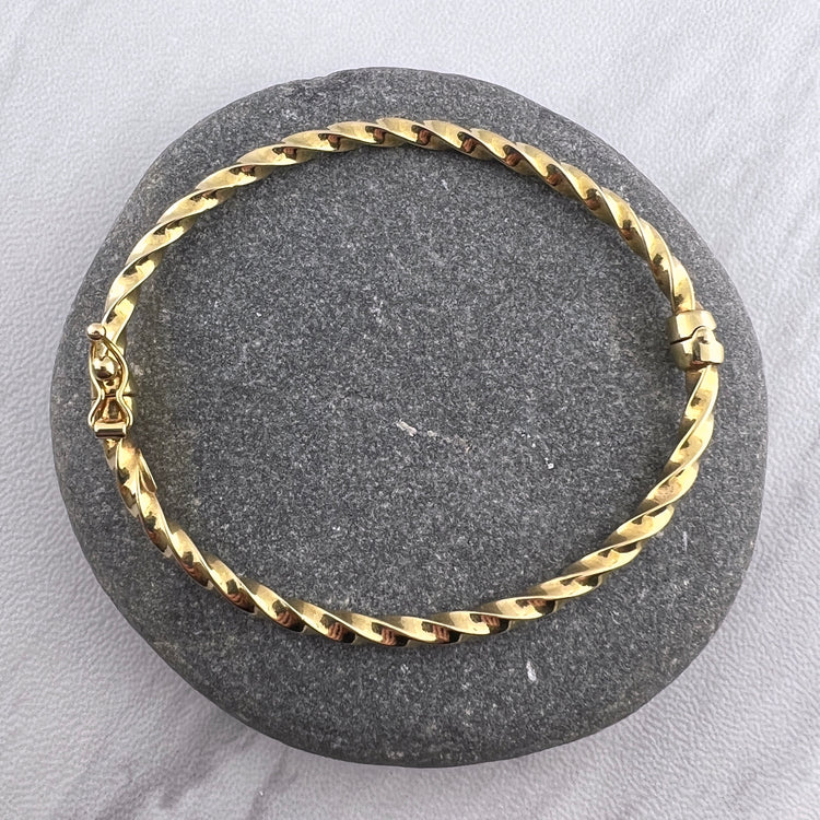 This 14k gold bracelet features a classic twisted design. It's a perfect for a special gift for a child.