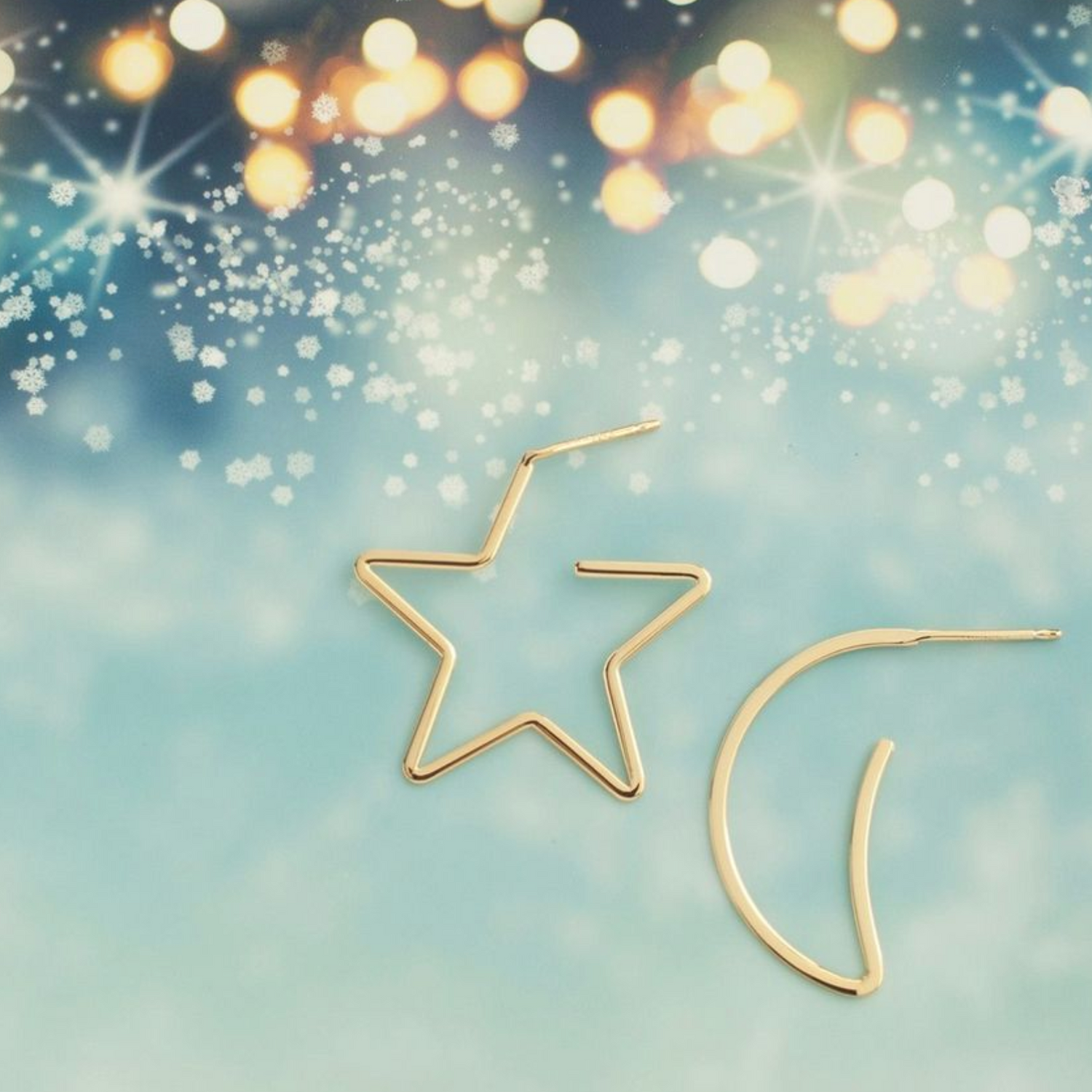 14K Gold Moon & Star Wire Earrings