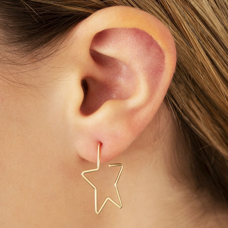 14K Gold Moon & Star Wire Earrings
