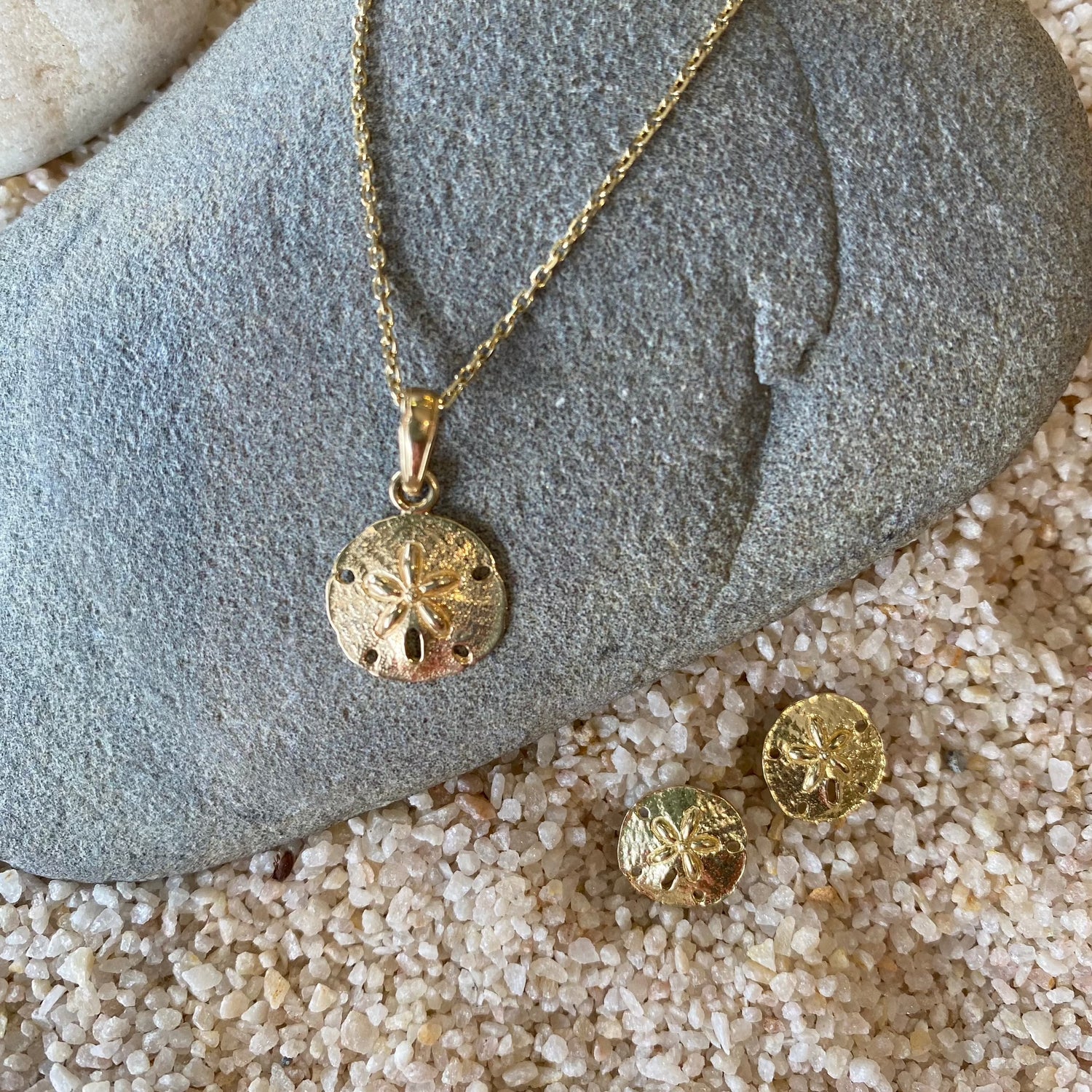 Our sand dollar pendant is beautifully crafted in 14K Gold and can also work beautifully as a charm for a bracelet to complete a sea treasure collection.