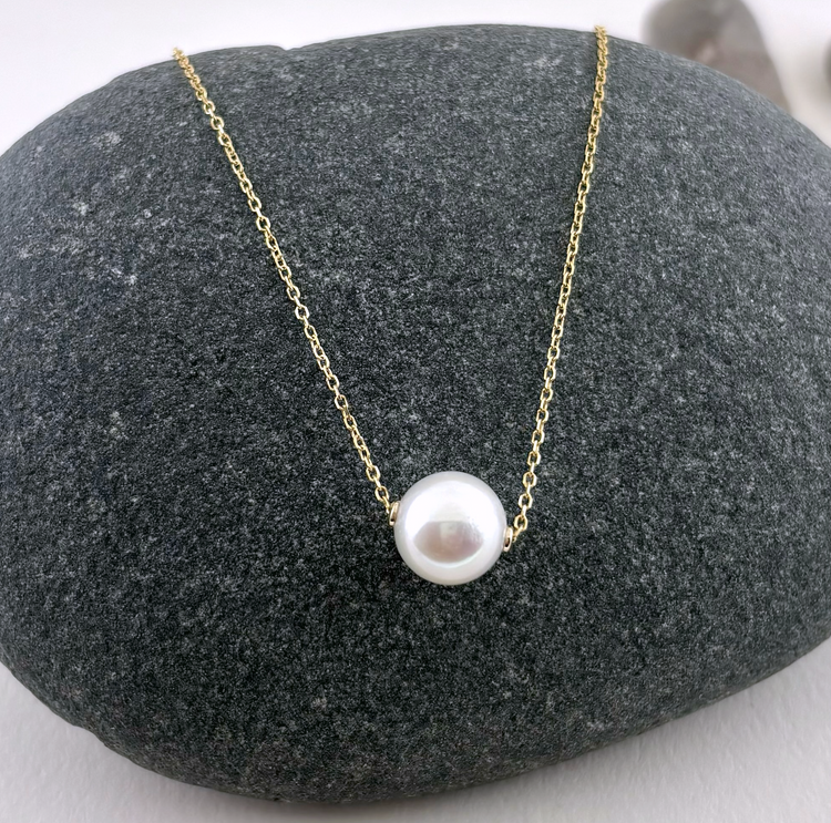 14K Gold Floating Pearl Necklace
