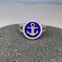This sterling silver ring features a raised 14k gold anchor on a bed of blue Lapis Lazuli. The silver ring features milgrain detail and an elegant split-shank band. Pairs perfectly with our 14k Gold + Silver Nautical Dream Anchor Necklace.