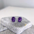 These vibrant oval amethyst stud earrings are set in a 14K white gold basket 4 prong setting. The gemstones are approximately 5 x 7 mm in size.