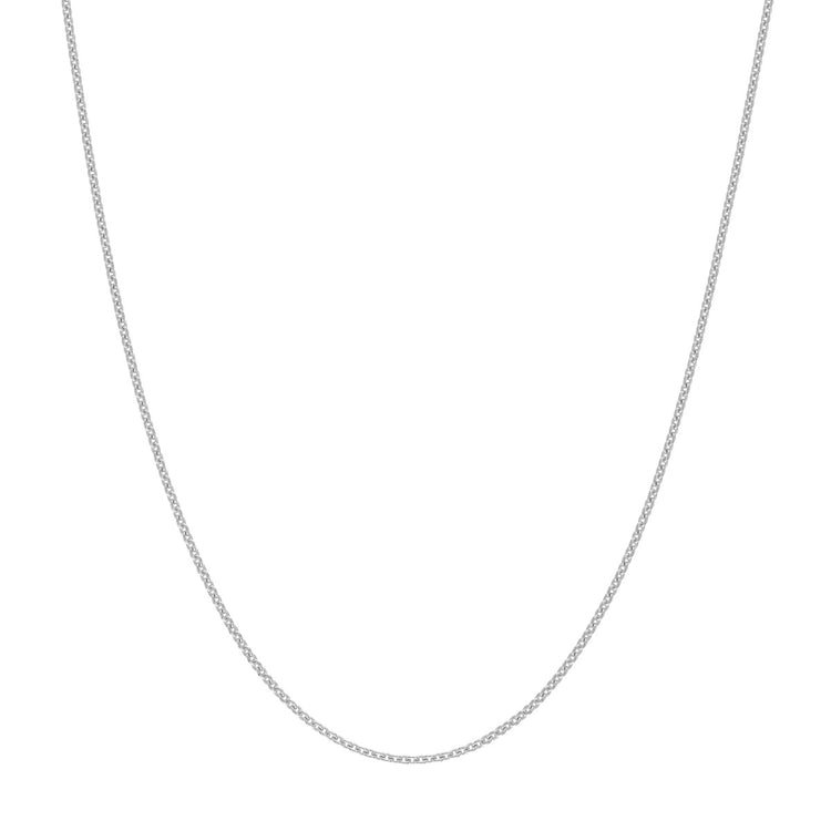 This is a thin, solid 14k white gold cable chain. The Cable chain is a cool classic. Add your favorite charm or pendant for a customized look.