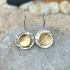 These handmade two tone earrings are a perfect addition to our Beach Stone Collection. These earrings features a round hammered sterling silver with smooth brushed 9K gold center that evoke the memory of beach walks and found treasures.