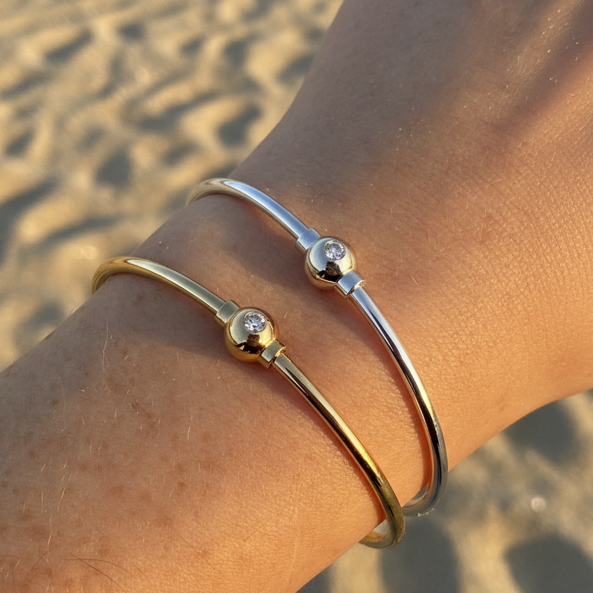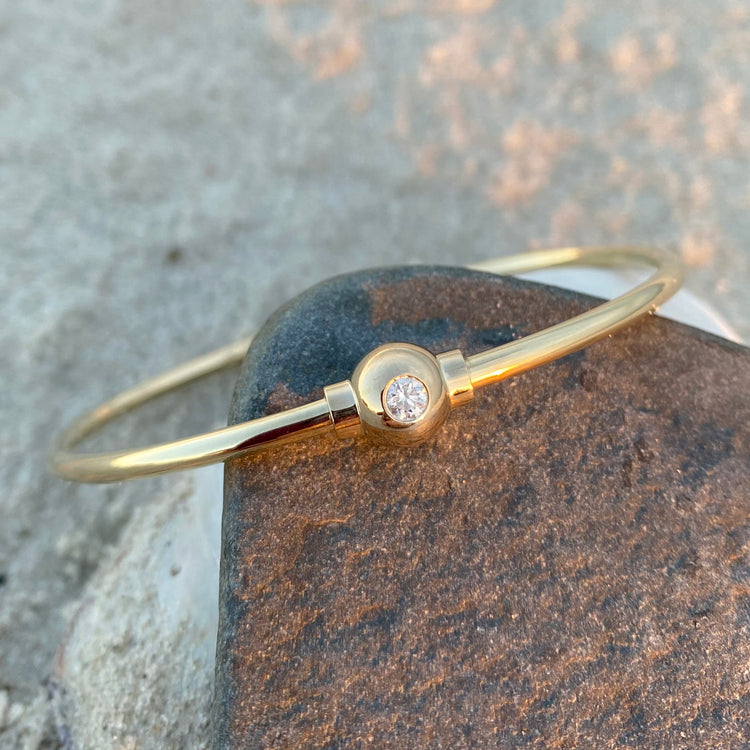 A sparkling addition to the classic Single Ball Bracelet. This bracelet features a 12 point natural diamond set in a 14K Yellow Gold ball with a bottom screw closure, to ensure the diamond always faces up.