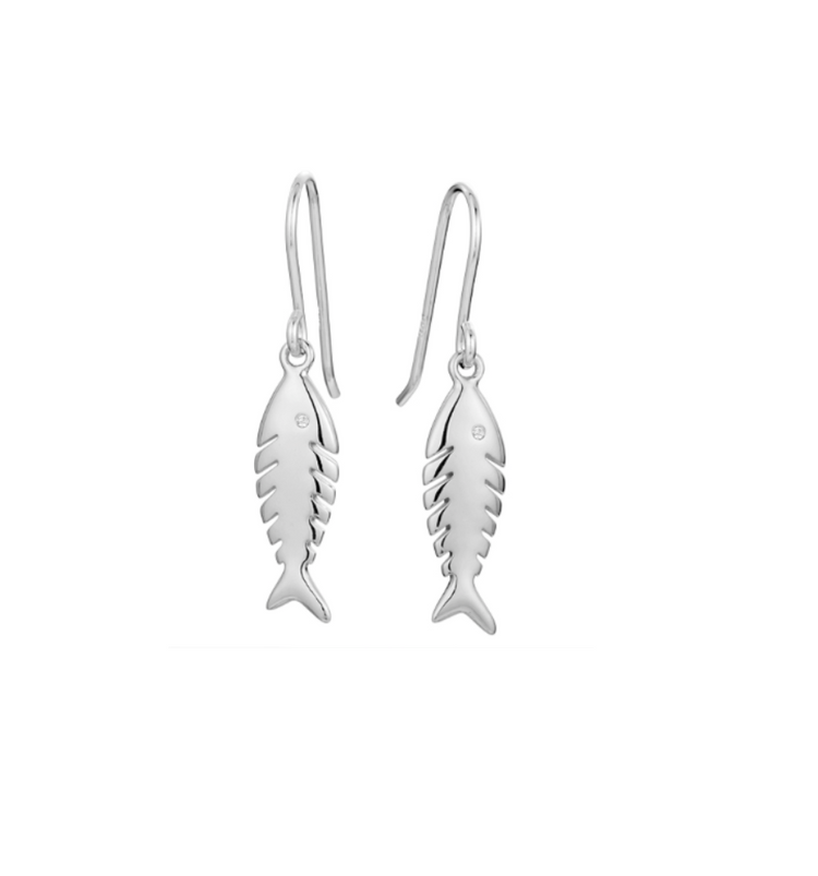 Sterling Silver Fish Bone Earrings with Crystal Eye