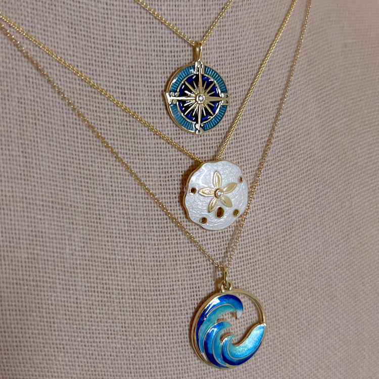 18K Gold Turquoise Ocean Waves Enamel Necklace
