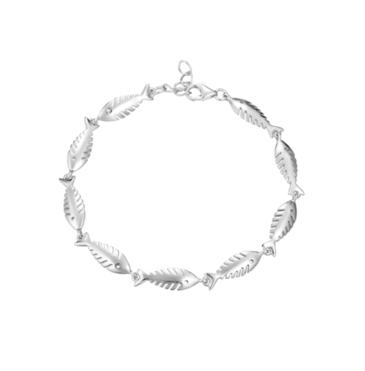 This Sterling Silver Fish Bone Link Bracelet features a lobster clasp with adjustable length options. It pairs well with our Sterling Silver Fishbone earrings and pendant.