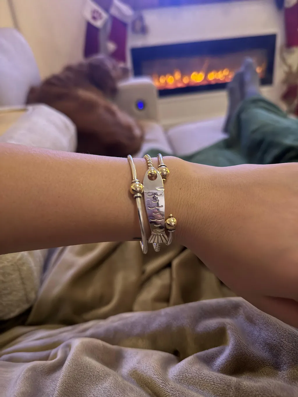 Bracelets in our Cape Cod Jewelers Collection and our Nautical Hook Bracelets are designed to be worn like a close-fitting bangle. Either the ball unscrews or the hook comes undone so that you may open up the bracelet to slip over your wrist. It is not meant to be slipped over the hand (your correct size will most likely be too small to fit over your hand.)